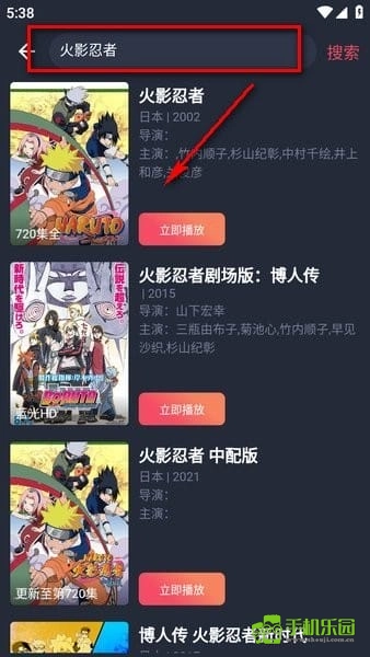 接着搜索要看的动漫名称,比如火影忍者,下面就会出现相关作品;