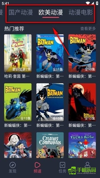 如果想观看特定地区的动漫,可在顶部导航栏选择国产动漫、欧美动漫、动漫电影等分类。