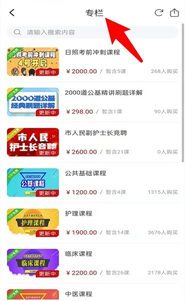 3.进入专栏页面可浏览各类课程内容,涵盖医护、公职、中医等考试方向。