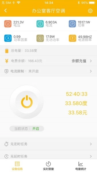 用户可以通过应用内的操作实现智能硬件设备的开关、定时开关、设定电源插座功率、设定电量统计等功能。