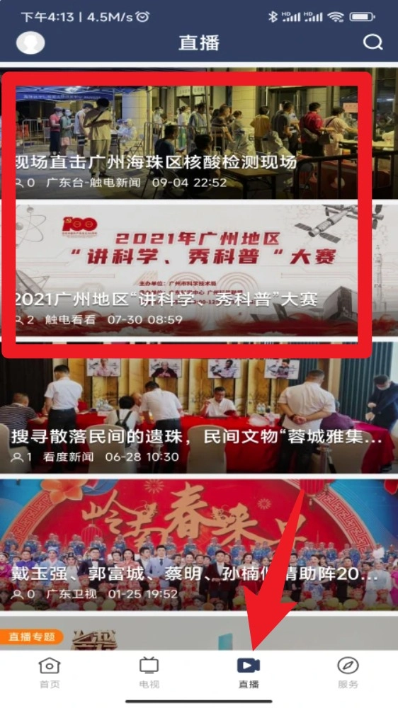 3.前往直播页面,可查看实时进行中的新闻事件与直播节目,点击画面即可进入全屏观看。