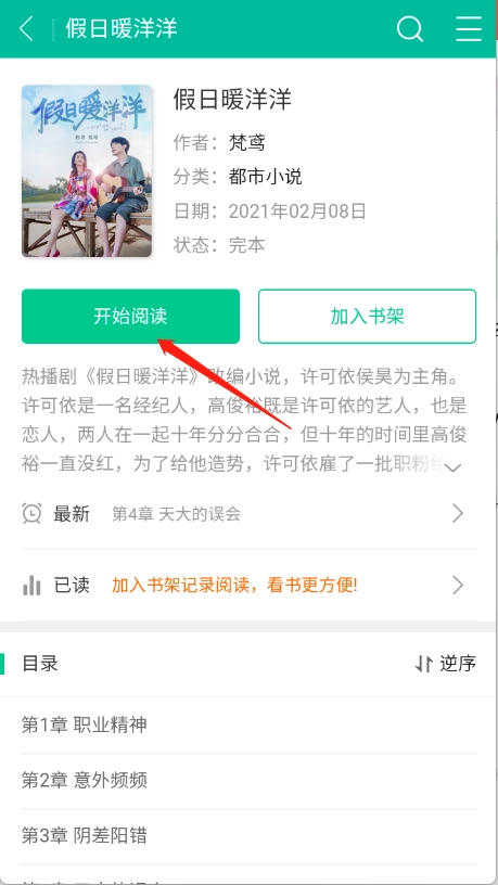 4、点开想看的小说进入到阅读页面,点击“开始阅读”。