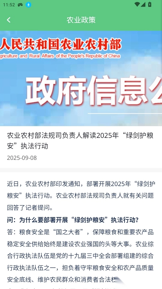 3.进入到软件首页中可浏览查看各种农业政策信息,选择政策点击进入
