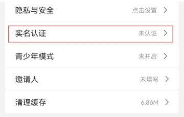 3、选择“实名认证”选项