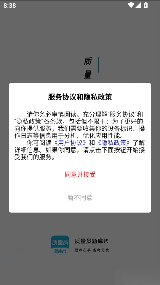 1.首先打开软件阅读协议和隐私政策后,点击“同意并接受”按钮进入