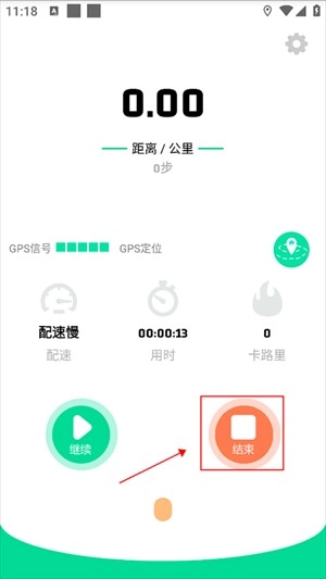 4、接着点击结束按钮,若还想跑则可以点击继续