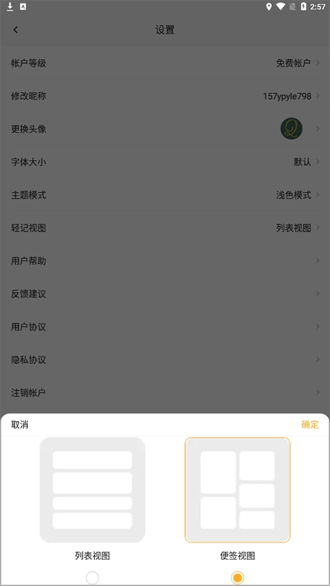 4、最后在下方弹出页面里选择便签视图,点击确定