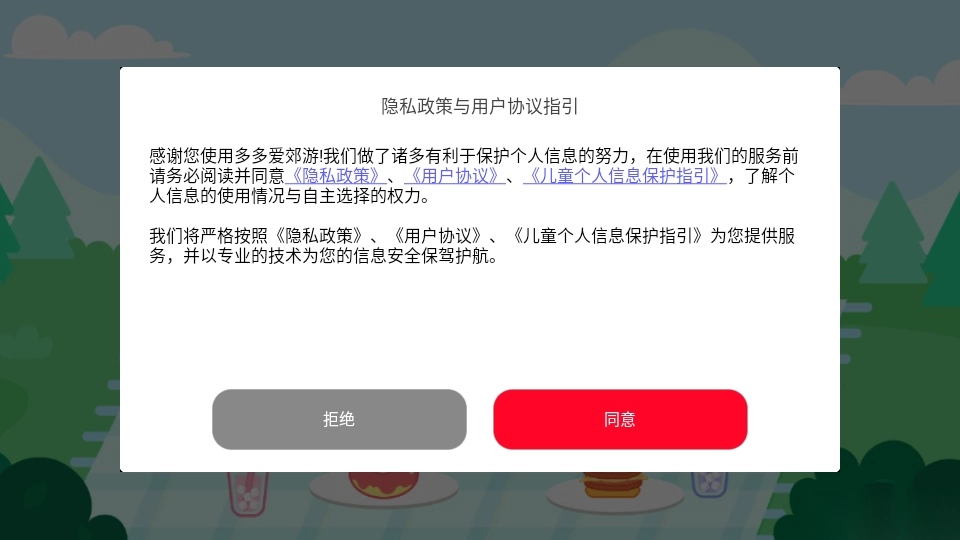 1.打开软件阅读“隐私政策与用户协议指引”点击“同意”进入