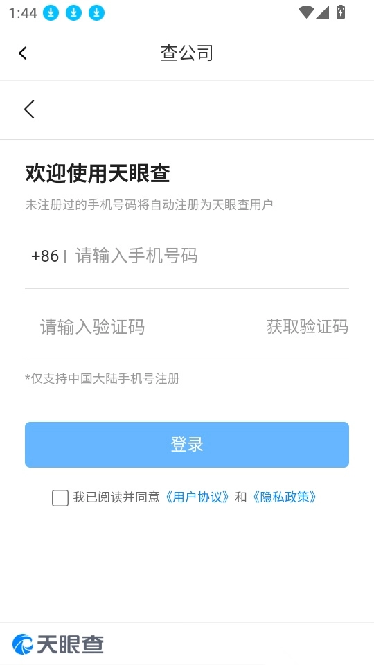 2、在登录界面中输入手机号和验证码后点击”登录“按钮进行下一步。