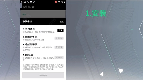 2、设置权限,给予悬浮窗权限、锁屏显示权限、后台显示权限