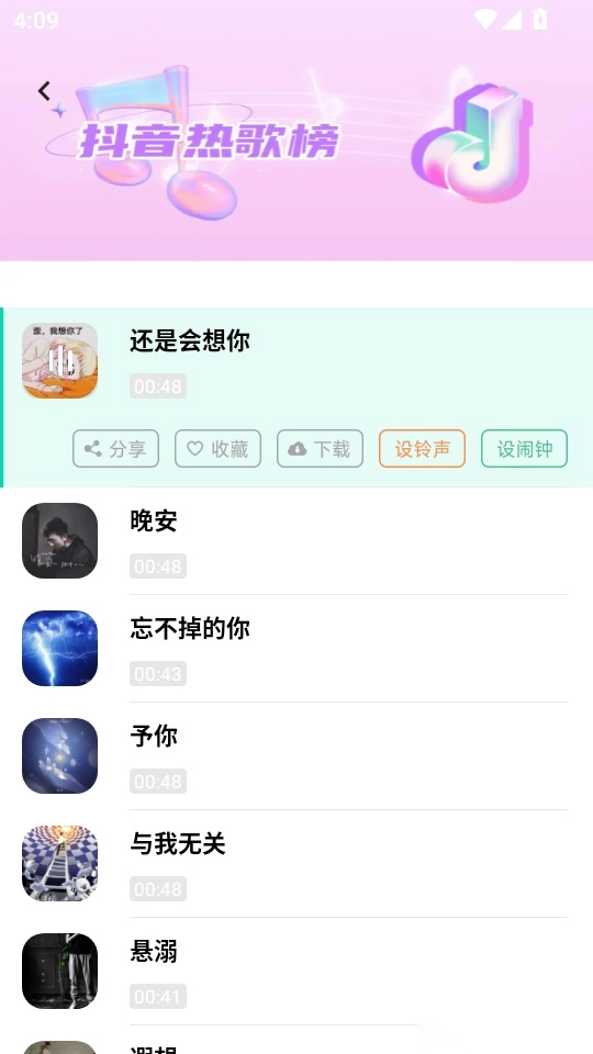 4.然后选择喜欢的抖音热歌后,点击“设铃声”功能按钮点击进入下一步
