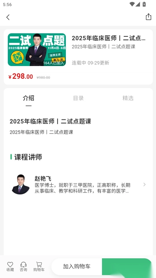 4.进入到课程的详情页面中点击“加入购物车”即可将课程加入购物车管理