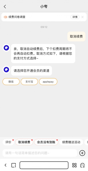 4、最后在客服咨询页面中,找到【取消自动续费】