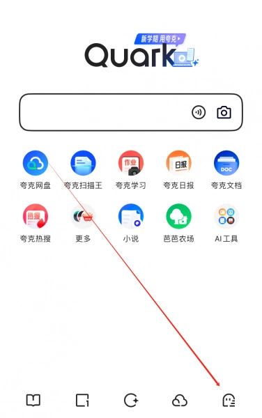 1、打开夸克,点击右下角的三消横线,进入更多功能界面。