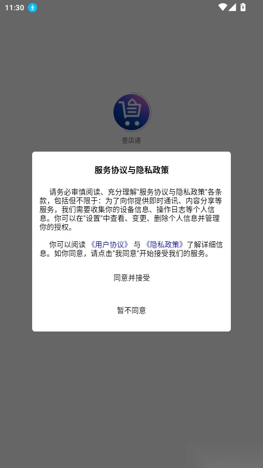 1.打开软件阅读“服务协议与隐私政策”点击“同意并接受”进入