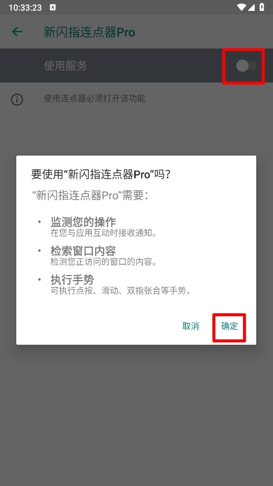 4、开启使用服务的开关,点击\\"确定\\"。