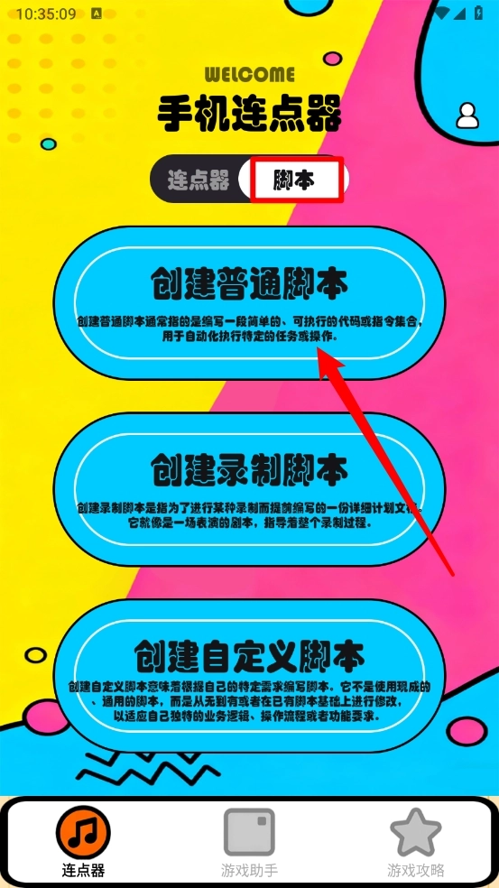 1、打开软件,切换至脚本页面选择创建点击脚本。