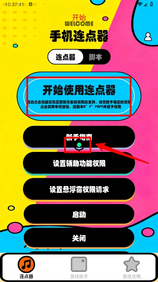 4、回到连点器板块,点击“开始使用连点器”,接着拖动光标到需要点击的位置,就能完成点击操作。