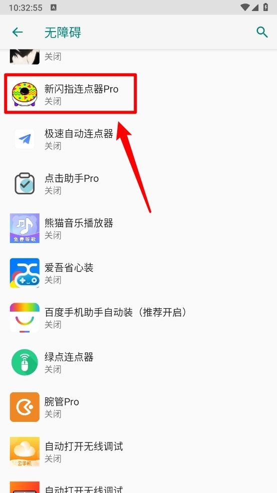 3、然后在无障碍页面打开\\"新闪指连点器Pro\\"。