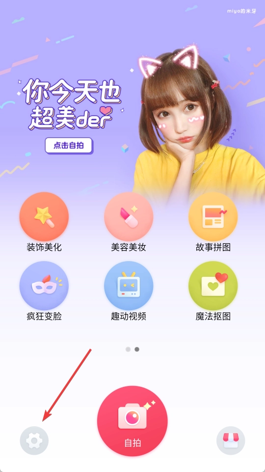 1、启动天天P图应用,点击界面左下角的齿轮图标按钮