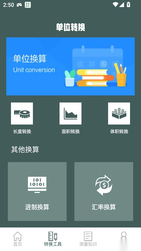 3.之后在“单位转换”功能菜单界面找到“长度转换”功能按钮点击进入