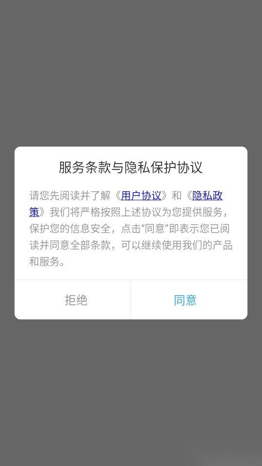 1.首先打开软件阅读条款与隐私保护协议后,点击“同意”按钮进入
