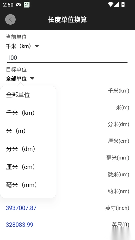 4.最后输入长度数值和选择单位后,就可以进行不同长度单位换算了