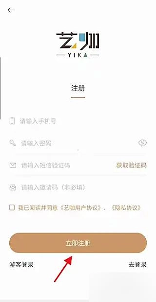 3、若尚未拥有艺咖账号,需先点击注册选项,根据指引填写必要信息以创建新的个人账户。