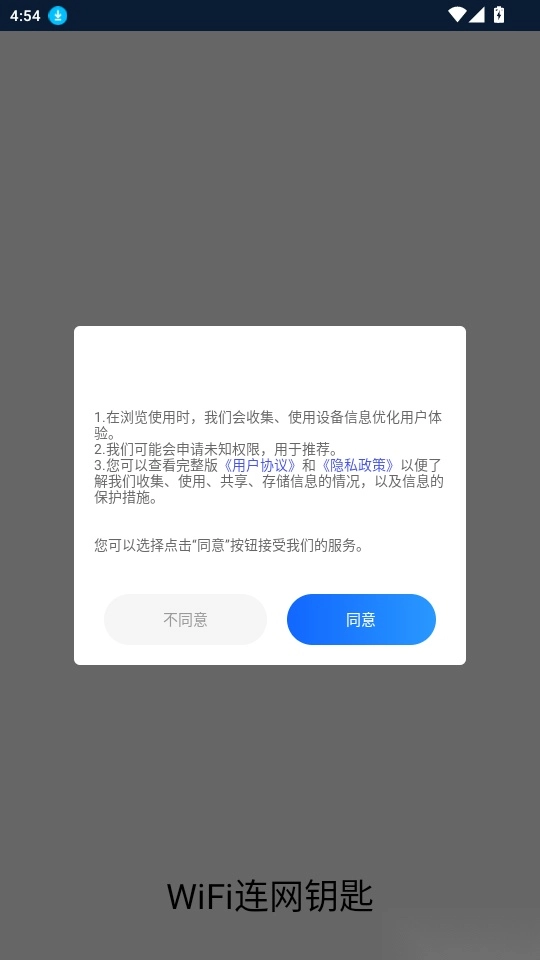 1.打开软件阅读“用户协议和隐私政策”点击“同意”进入