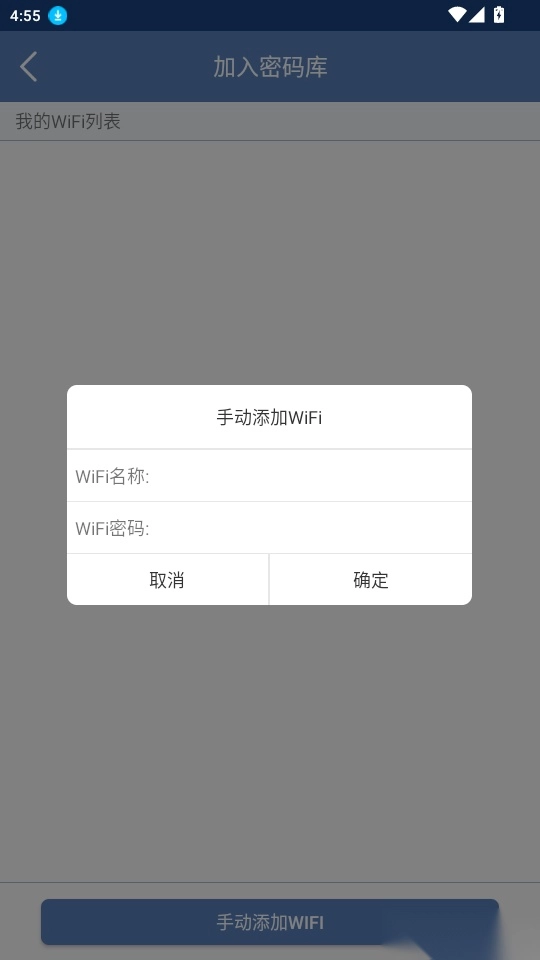 3.进入到加入密码库页面中点击“手动添加WiFi”进入下一步