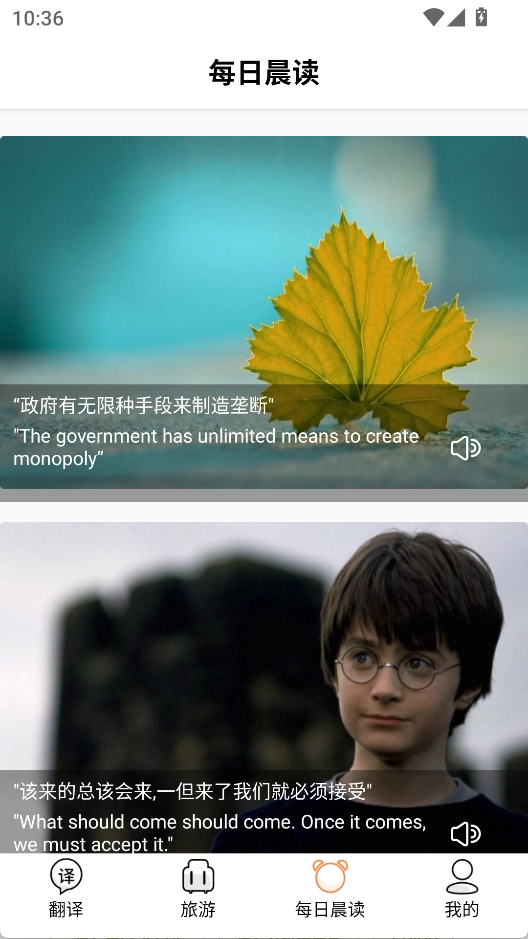3、“每日晨读”界面推送精选中英对照句子