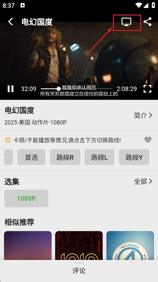 3、点击影片,在播放页面卡顿可以切换播放源。