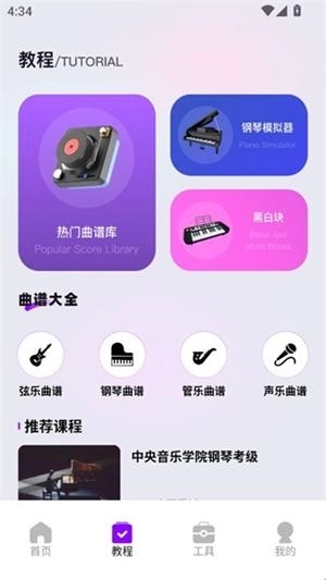 3.深入教程板块,这里堪称音乐爱好者的梦幻乐园,热门曲谱库,钢琴模拟器、黑白快节奏曲谱各类乐器曲谱资源丰富齐全。