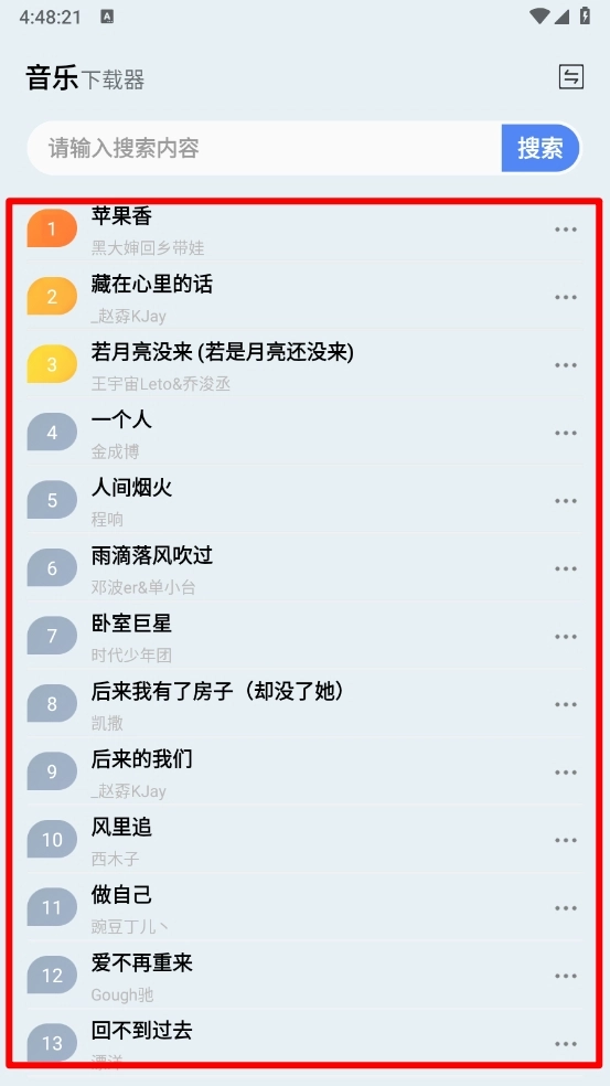4、支持通过搜索功能一键查找想听的歌曲或歌手名字。