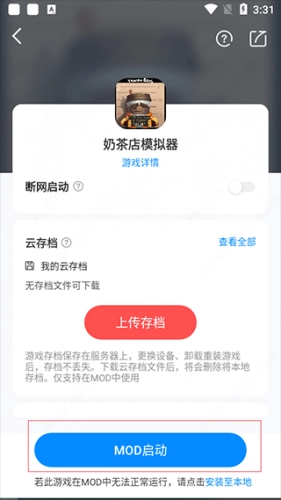 1、在应用首页点MOD按钮。
