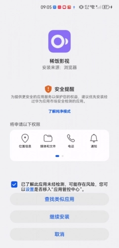 3、第三步,点击勾选“已了解此应用未经检测……”,然后再点击“继续安装”。(出现安全提醒,不用惊慌)