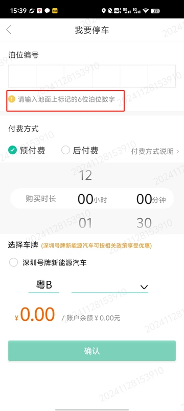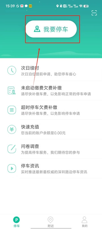 第四步:抵达指定位置后,点击“我要停车”,输入停车泊位号并选择停车时间,完成支付即可停车。(绑定车辆时,正常填写车牌号即可;若为深圳号牌的新能源车辆,可享受停车优惠,其他类型车辆无此优惠。)
