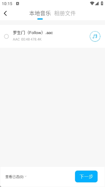 在本地音乐或相册文件中选择需要处理的音频(如“罗生门(Follow).aac”),点击“下一步”进入编辑界面。