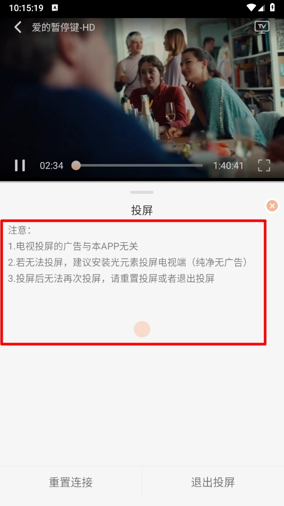 4、最后进行搜索连接电视设备后即可开启投屏播放,手机和被投屏的设备需要在同一wifi下。