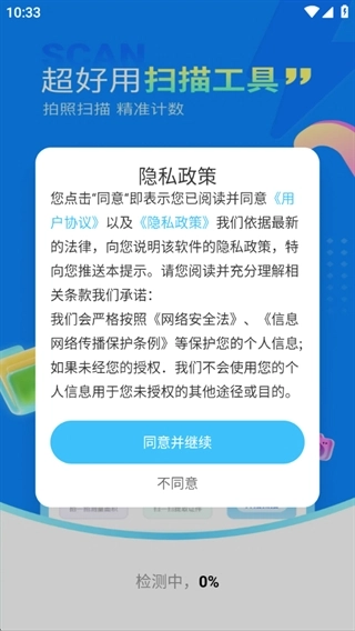 1、仔细阅读用户协议与隐私政策,确认无误后点击同意并继续操作;
