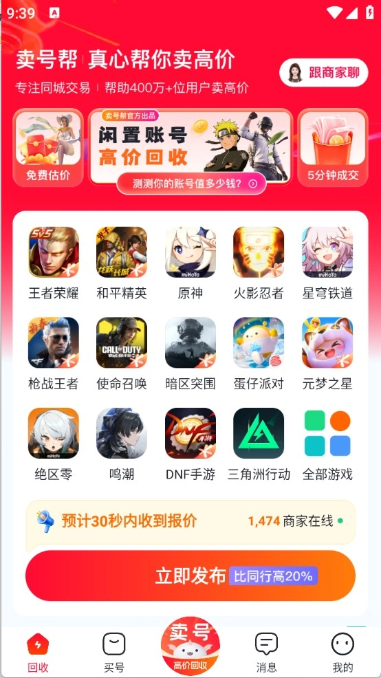 卖号帮是一款专为游戏玩家打造的账号交易平台,通过实名认证开启账号交易,让软件使用更安全;平台涵盖各类游戏账号,出售账号更便捷;严格审核保障软件使用安全,性价比对比更简单;支持一站式账号交易,游戏分区筛选轻松便捷,有需要的用户千万别错过!