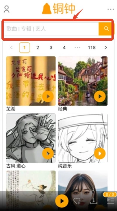 2、在首页上方的搜索框可以输入想要听的歌曲或要找的艺人。