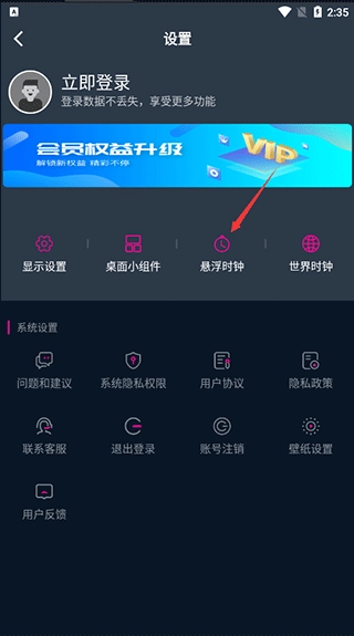 可设置将时钟显示悬浮于各个应用之上。