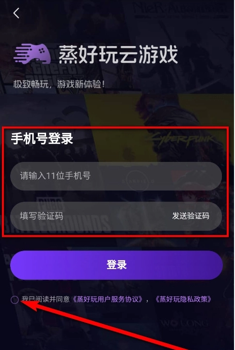 5、如果想要以云玩的方式游玩当前游戏,则需要在登录界面仔细阅读并同意蒸好玩用户服务协议、蒸好玩隐私政策后获取基本功能。