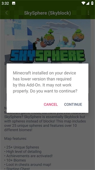 5、在此界面点击CONTINUE,点击完成导入了,随后会自动跳转至我的世界游戏,玩家就可以上线畅玩啦!
