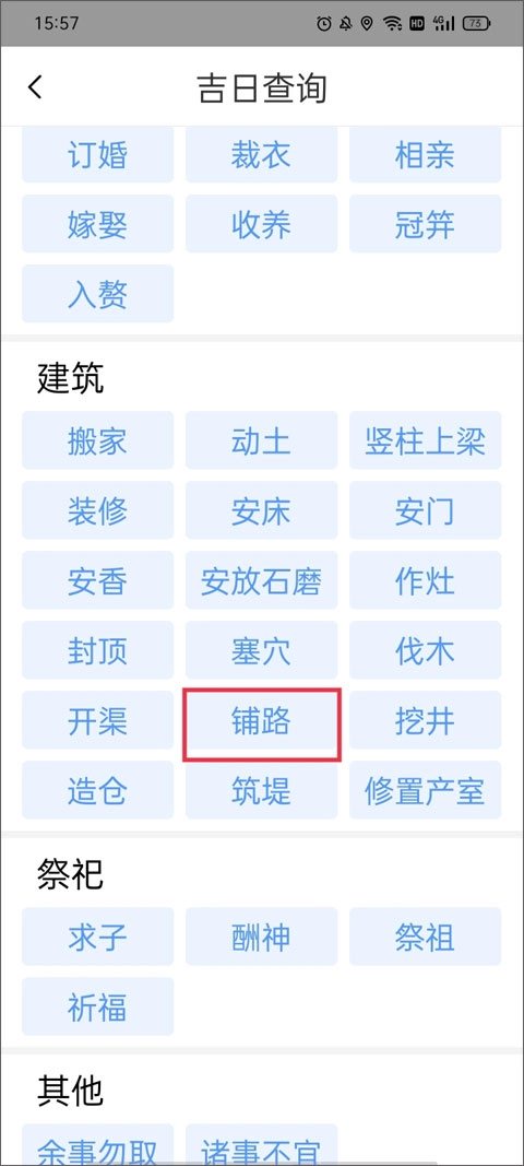 2、选择你想要查询的吉日项目,并选中它。