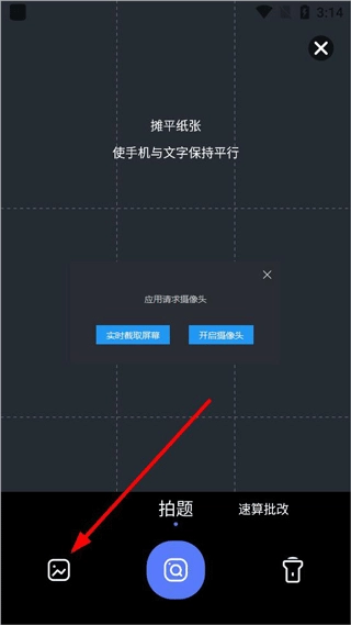 2、打开错题录入后,开启摄像头拍照,或者点击左下角打开相册;