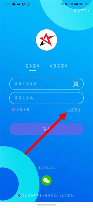 1、启动智安星定位器,选择设备登录选项,依次填写设备号与密码,完成后点击登录按钮。