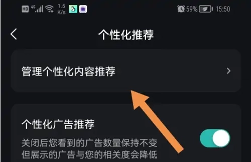 3、进入界面后,点击管理个性化内容推荐。
