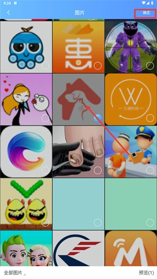 2、在图片列表勾选目标图片,点击右上角【确定】,进入编辑环节。